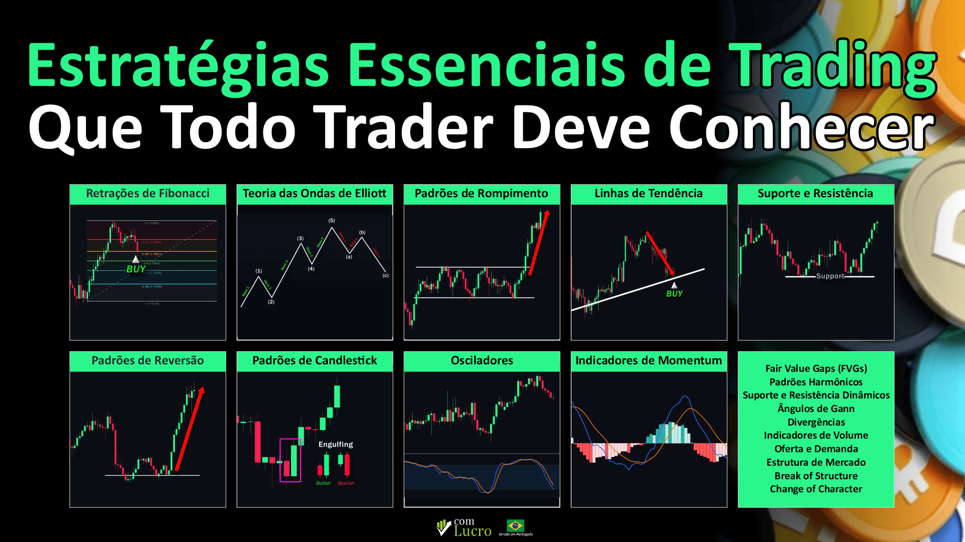 Estratégias de Trading, Estrutura de Mercado, Rompimento de Estrutura, Oferta e Demanda, Linhas de Tendência, Indicadores de Volume, Divergências, análise técnica, day trading, retracement de Fibonacci, médias móveis, ComLucro