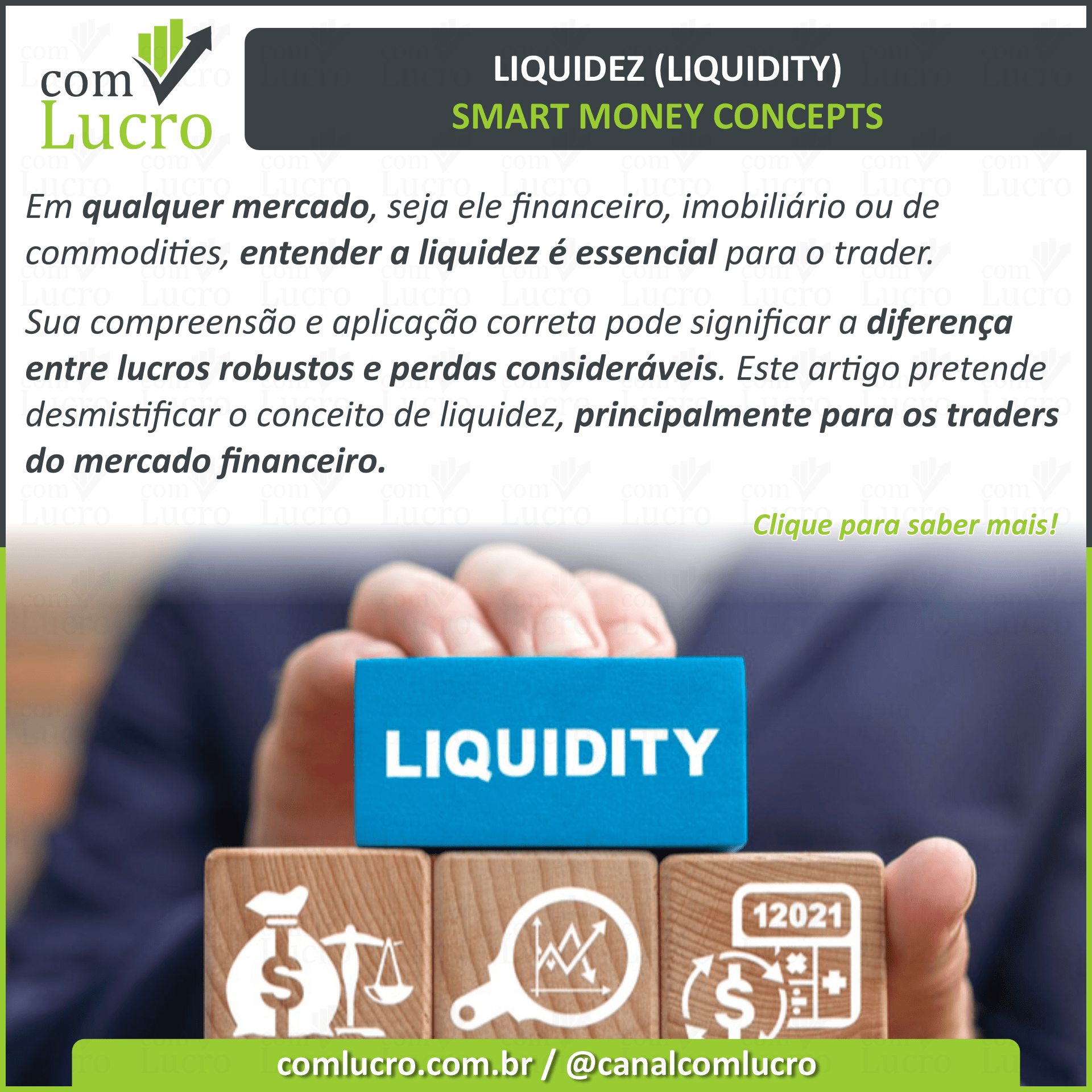 Olá, traders, e bem-vindos de volta a mais um artigo no canal ComLucro. No capítulo de hoje do nosso Curso de Conceitos Smart Money, vamos explorar o que separa os profissionais dos amadores no trading: a habilidade de ler e entender a liquidez, a linguagem do mercado. É exatamente isso que vamos abordar neste capítulo. Vamos nos aprofundar em um dos conceitos essenciais no trading: a liquidez. Também vamos descobrir a psicologia por trás do smart money e revelar as táticas que as grandes instituições financeiras usam para manipular o mercado, enganar traders e criar armadilhas. Além disso, vamos desvendar padrões práticos de liquidez que frequentemente se formam no mercado – padrões que todo trader deve identificar para estar um passo à frente. Portanto, certifique-se de assistir a este vídeo com atenção e pegue seu bloco de notas, pois vamos equipá-lo com conhecimentos inestimáveis.